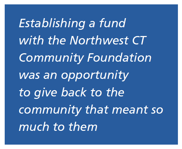 “Doug and Janet lived a good, but a very frugal life,” said Dave. “Establishing a fund with the Northwest CT Community Foundation was an opportunity to give back to the community that meant so much to them.”