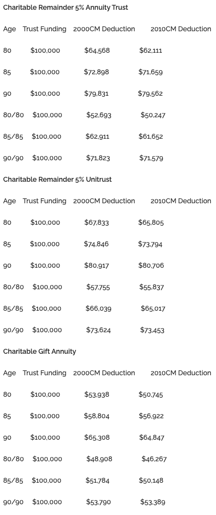 When the REG–122770–18 proposed regulations for "Actuarial Tables and Valuing Annuities, Interests for Life or a Term of Years, and Remainder or Reversionary Interest" are made final, the values of charitable deductions for annuity trusts, unitrusts and charitable gift annuities will be lower.