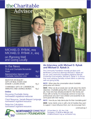 The Community Foundation recently sat down with Northwest Connecticut attorneys Michael D. Rybak and his son, and Community Foundation Apolonia Stanulis Scholarship Fund recipient, Michael D. Rybak Jr. to discuss their work advising charitably inclined clients on planning well and giving locally.