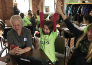 Each spring, The Women & Girls Fund in collaboration with Rhok, Jr. hosts a “hackathon” for social good with girls in grades 4th-8th. 2017 Random Hacks of Kindness participant builds an app for CAFTA Volunteer mentors from local high schools work with younger girls to devise smartphone applications that address a range of problems facing local nonprofits. “Rhok brings together local organizations that serve women and girls to raise awareness in the community of available resources, and it exposes girls to the joy of computer programming, presenting them with the possibility of pursuing a STEM-related career, which can more than double their earning potential,” said Barbara Dughi, Women & Girls Fund Board Chair.