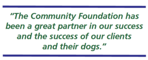 “The Community Foundation has been a great partner in our success and the success of our clients and their dogs.”