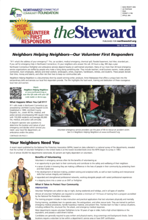 Established in 2020, the Northwest Connecticut Community Foundation Local First Responder Fund for Mutual Aid supports the specific program and equipment needs of first responder organizations within Northwest Connecticut. To give to the Local First Responder Fund for Mutual Aid, visit www.northwestcf.org/donate