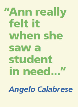 "Ann really felt it when she saw a student in need," said Angelo. She had a way of seeing when people were struggling, people of any age, but especially children."