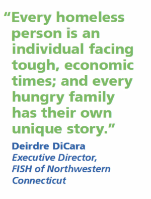 "Every homeless person is an individual facing tough, economic times; and every hungry family has their own unique story," said Deirdre DiCara, FISH of Northwestern Connecticut executive director.
