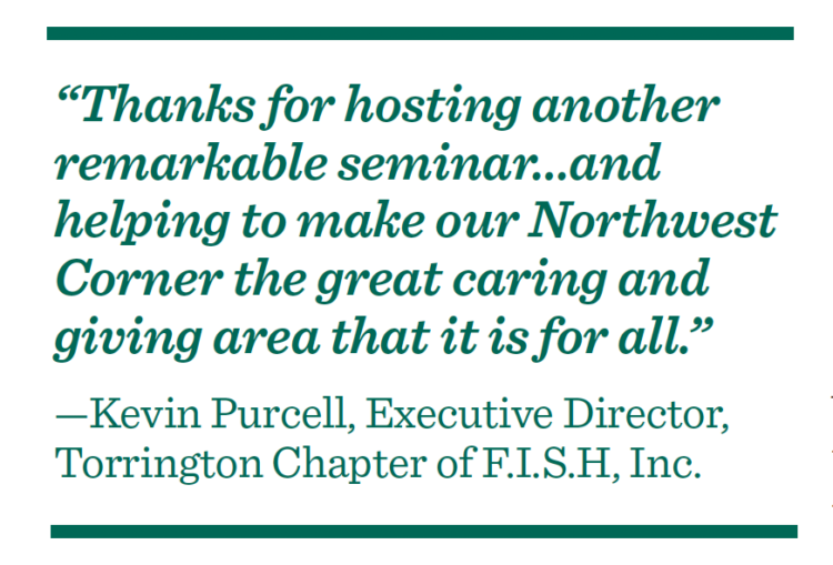 The daylong educational and networking event, sponsored by Union Savings Bank, Torrington Savings Bank and Northwest Community Bank, covered all aspects of raising money, from annual appeals and capital campaigns to planned giving and special events.