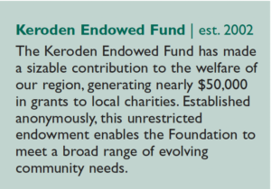 The Foundation awards grants to local nonprofit organizations three times a year: in early spring, late June and late fall. Find a complete listing of this year’s first- and second-cycle grants online by clicking “News” at www.cfnwct.org.